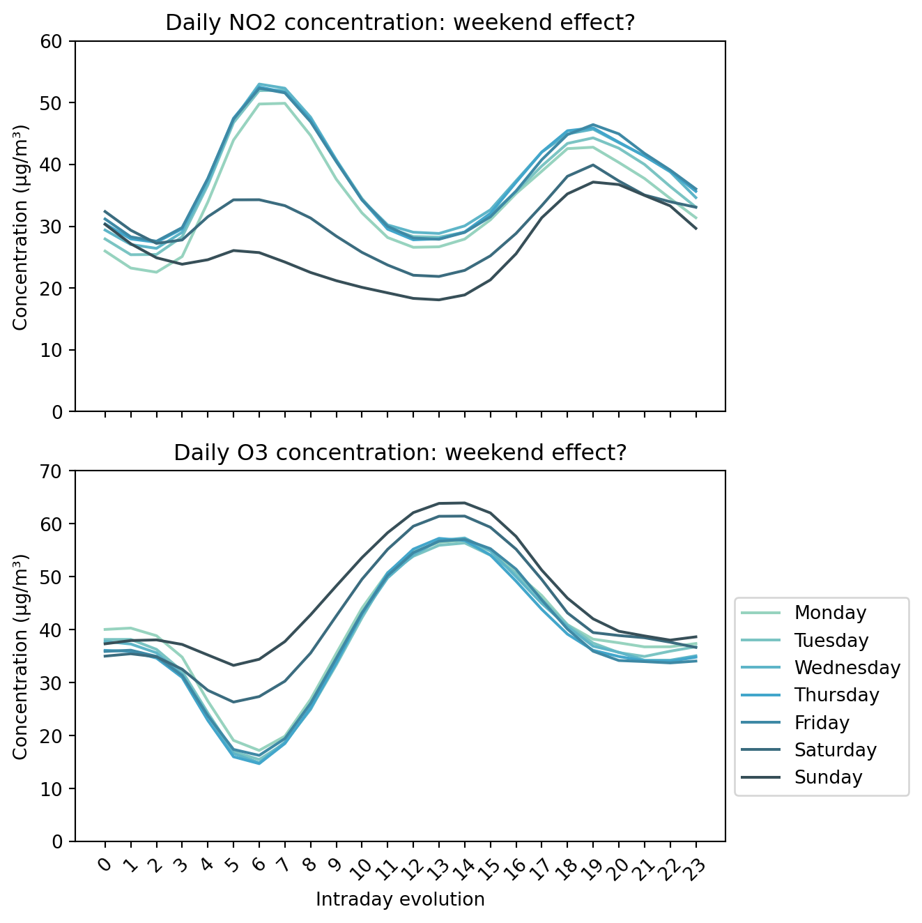 "Daily NO2 concentration: weekend effect?")