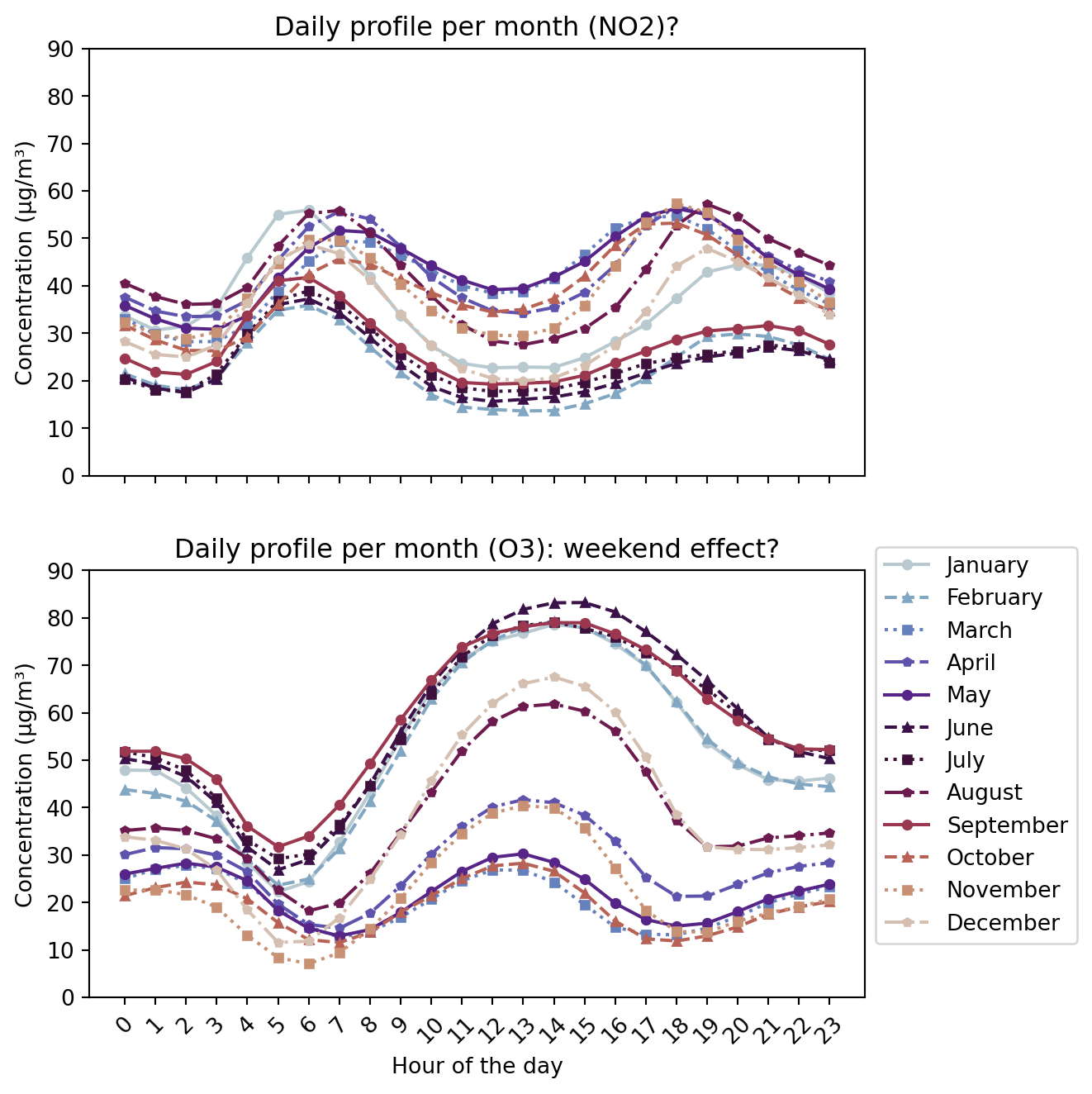 "Daily profile per month (NO2)?")